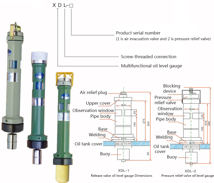 The multifunctional XDL series oil level gauge produced by our company is installed on the top of the transformer tank. There are two colors in the buoy indicating device to show the inner oil level of the transformer: green and red. The green means that the oil level is normal. The red means that the oil level falls and we should refuel the transformer. The XDL series oil level gauge is of multiples functions. It can be used as oiling connection pipe and can be used in pressure relief valve installation and pressure measurement of vacuum pumping connection transformer. The screw-threaded connection can guarantee the rational compression amount of the seal ring, and meanwhile, it can prevent the ultraviolet ray effectively to prolong the life of the seal ring. We can observe the oil level through the observation window in 360 degrees, so we can see the accurate oil level changes in any angles.