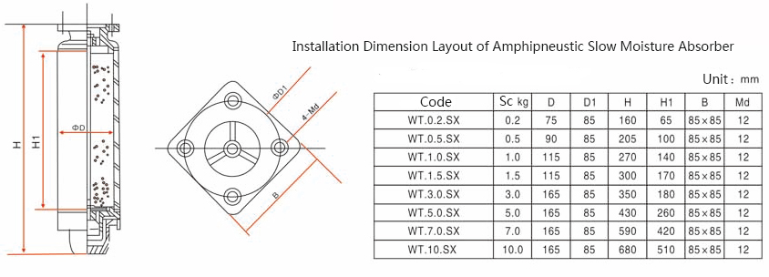 The amphipneustic slow moisture absorber is a new air purifying device used in the transformer oil conservator. Its features are as follows: firstly, the air purifying time is longer. It extends the purifying time, so the moisture absorbing frequency is 30% increased than regular moisture absorber. Secondly, the purifier room is made by transparent glass tank and blue allochroic silicagel. The bottom part uses the labyrinth air inlet. We can see the inspiration and expiration of the moisture absorber directly when the transformer runs after filled with oil in the oil cup. At the same time, we can see whether the transformer is working or not. It can more effectively prevent the dust and moisture from entering the oil of the transformer to guarantee the insulation strength of the transformer oil.