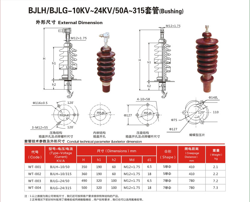 BJLH/BJLG-10KV~24KV/50A~315變壓器套管