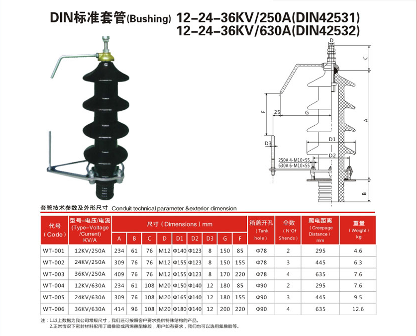 12-24-36KV/250A(DIN42531) 12-24-36KV/630A(DIN42532)變壓器套管