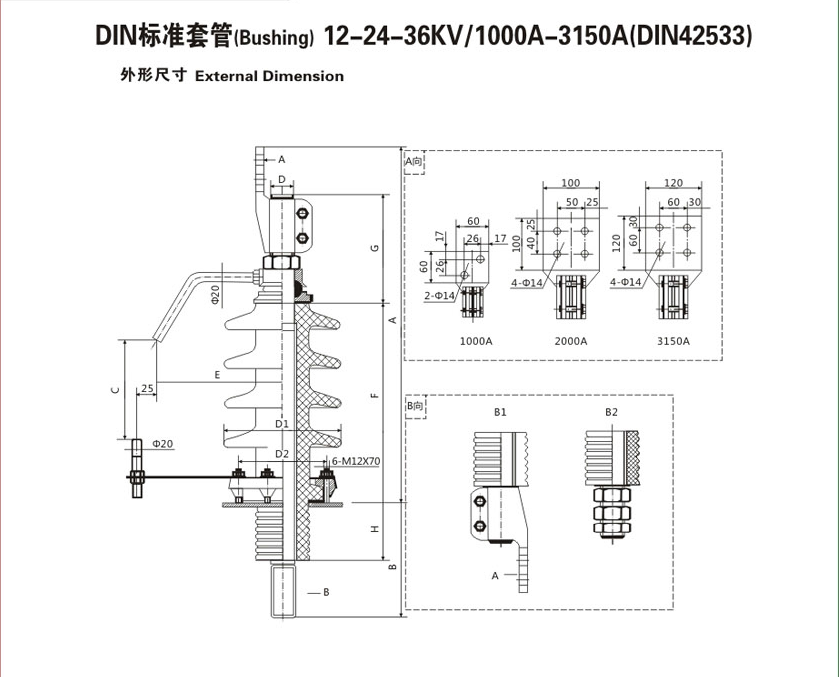 12-24-36KV/1000A-3150A(DIN42533)變壓器套管