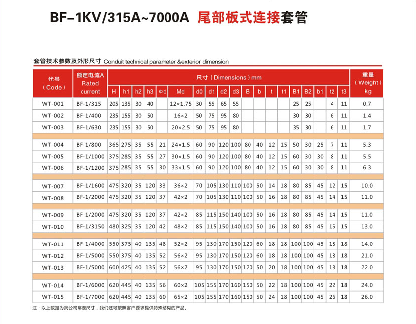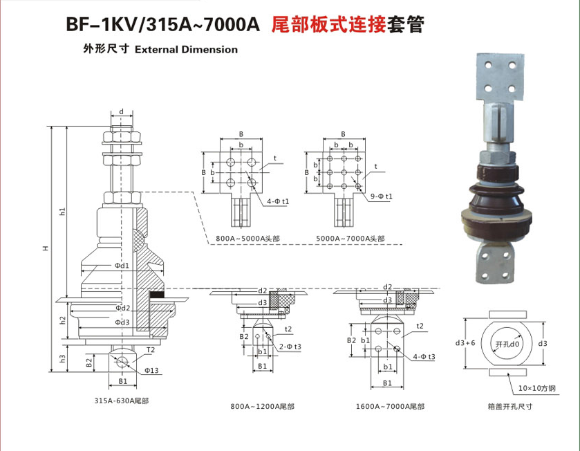 BF-1KV/315A~7000A尾部板式連接變壓器套管