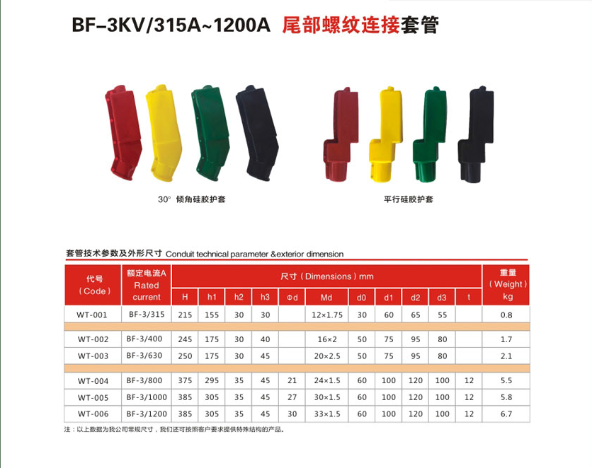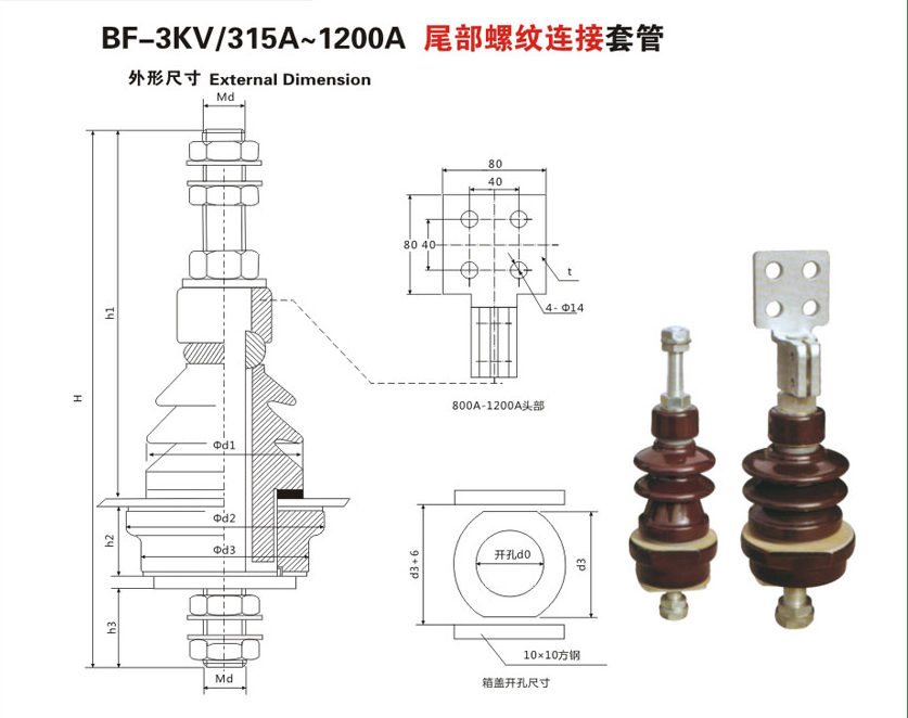BF-3KV/315A~1200A尾部螺紋連接變壓器套管