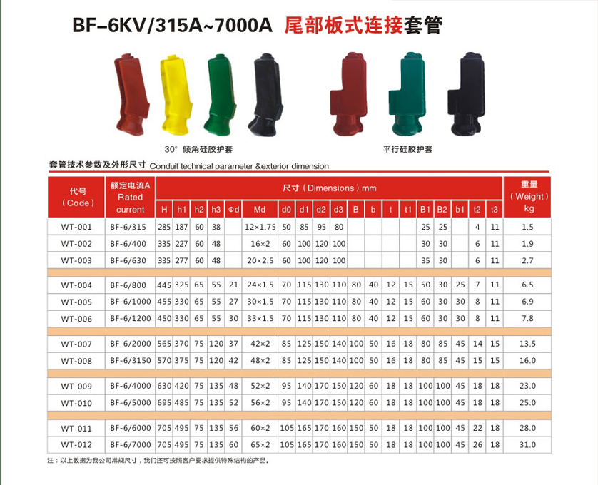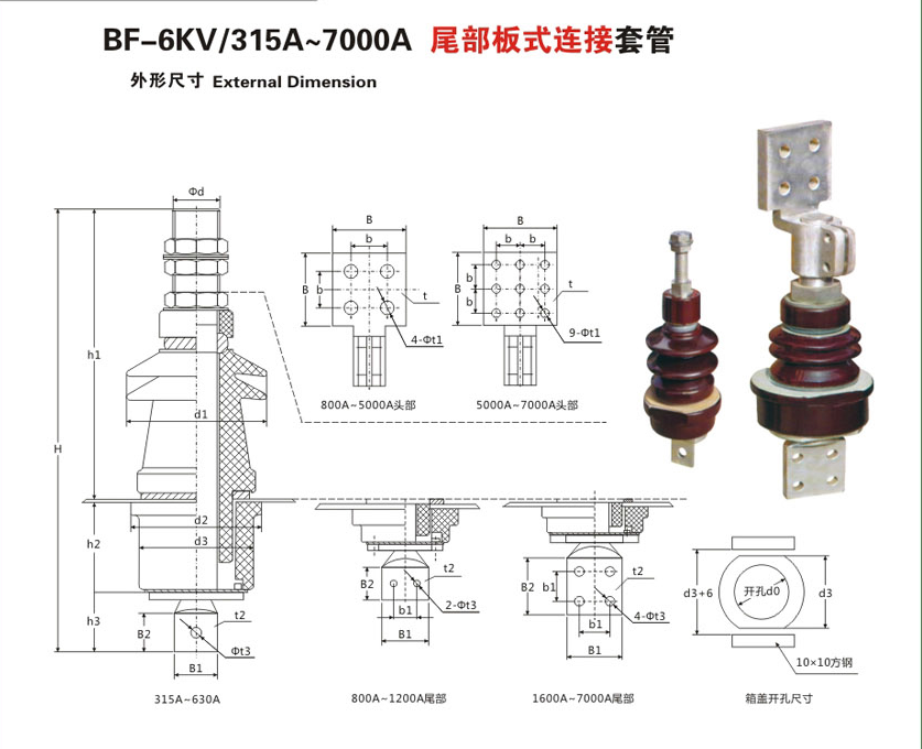 BF-6KV/315A~7000A尾部板式連接變壓器套管