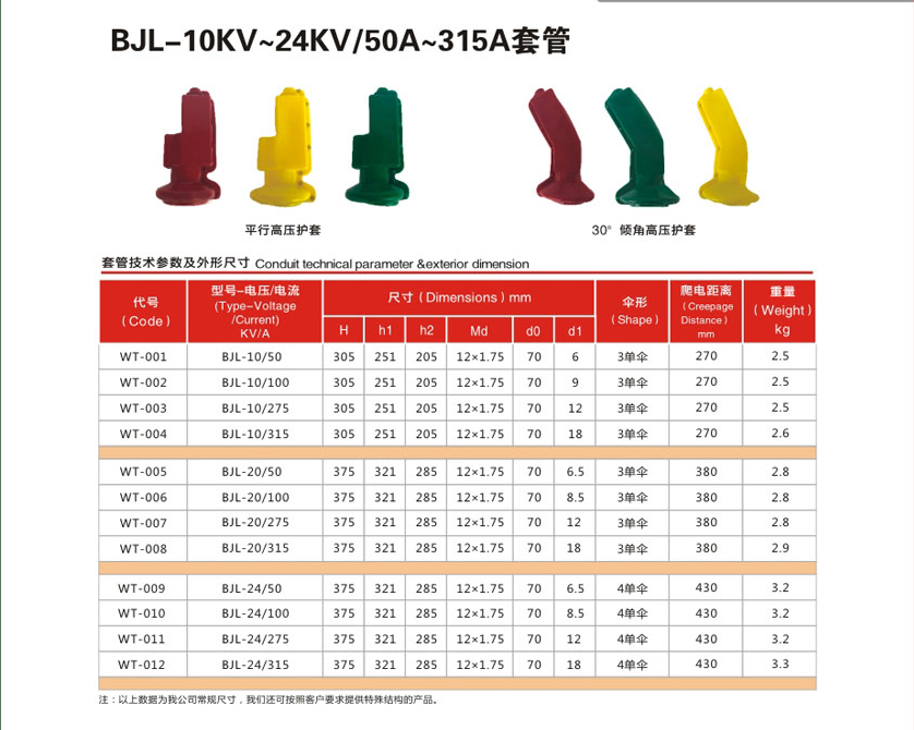 BJL-10KV~24KV/50A~315A變壓器套管
