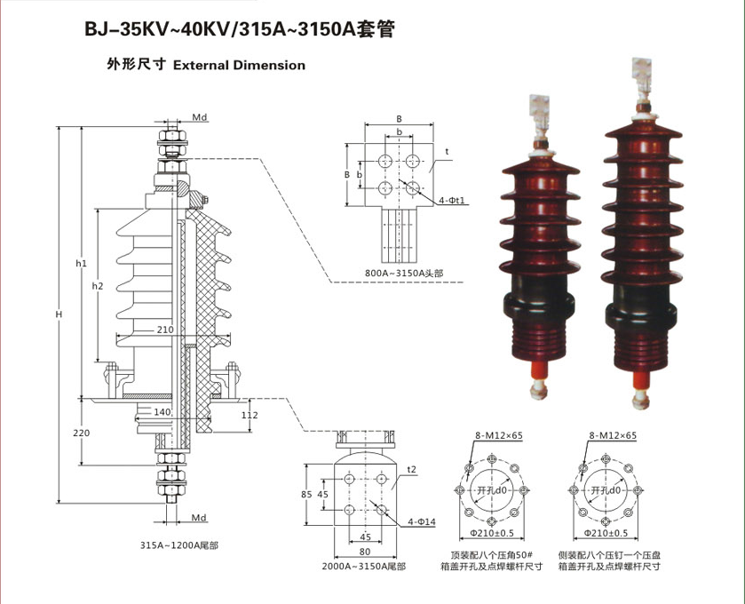 BJ-35KV~40KV/315A~3150A變壓器套管