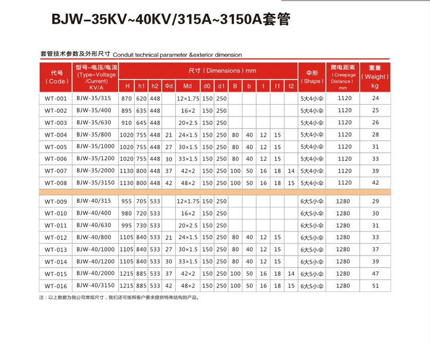 BJW-35KV~40KV/315A~3150A變壓器套管
