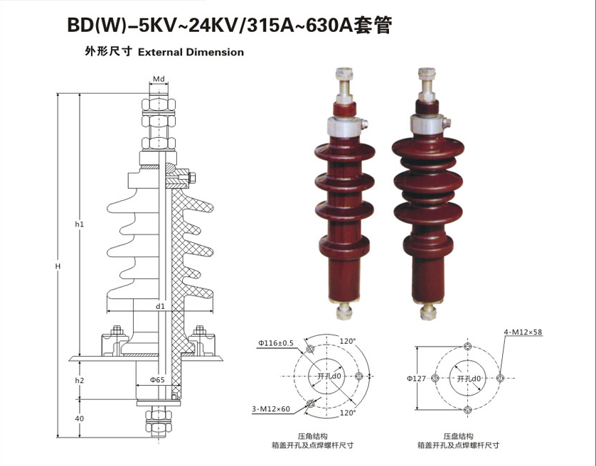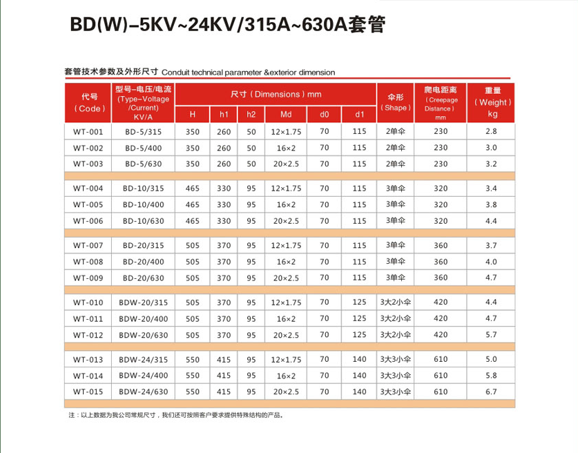 BD(W)-5KV~24KV/315A~630A變壓器套管