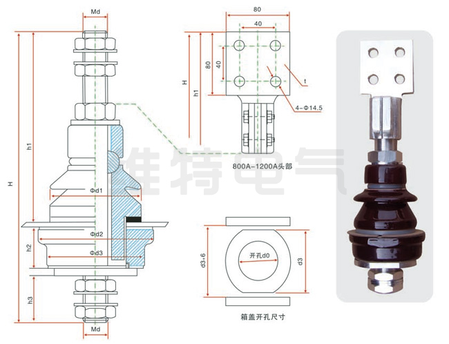 BF-1 KV/300A-1200A變壓器套管(尾部螺桿連接)