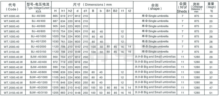 BJ-40KV/300A-3150A BJW-40KV/300A-3150A變壓器套管
