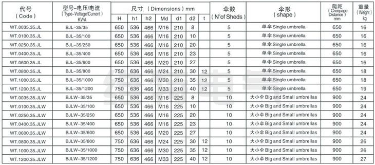 BJL-35KV/35A-1200A BJLW-35KV/35A-1200A變壓器套管