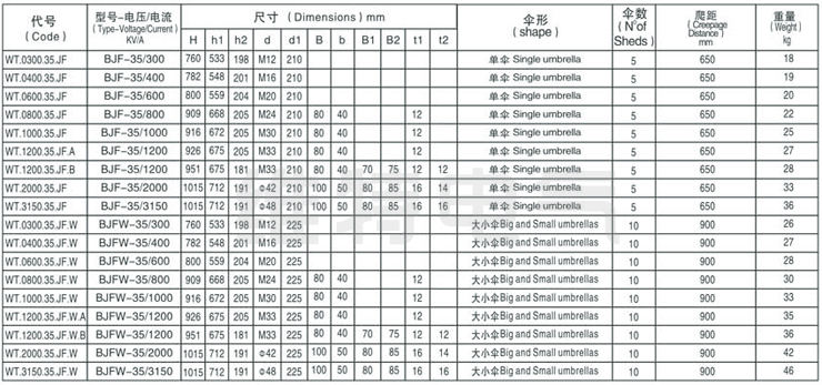 BJF-35KV/300A-3150A BJFW-35KV/300A-3150A變壓器套管