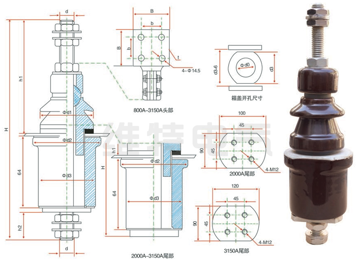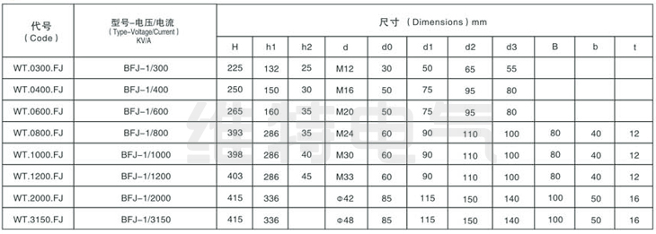 B-變壓器用;D-單體瓷絕緣;F-復合瓷絕緣;J-有附加絕緣:W-防污;L-穿纜(或可裝電流互感器),套管型號中“廣前 的數字表示額定電壓(KV ) 后的數字表示額定電流(A)。