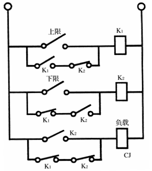該功放線(xiàn)路中的下限接點(diǎn)只要接觸一次,線(xiàn)圈回路便進(jìn)入自鎖狀態(tài)。也只有當上限接點(diǎn)動(dòng)作一次,下限回路才退出自鎖,從而實(shí)現保護電觸頭的要求。